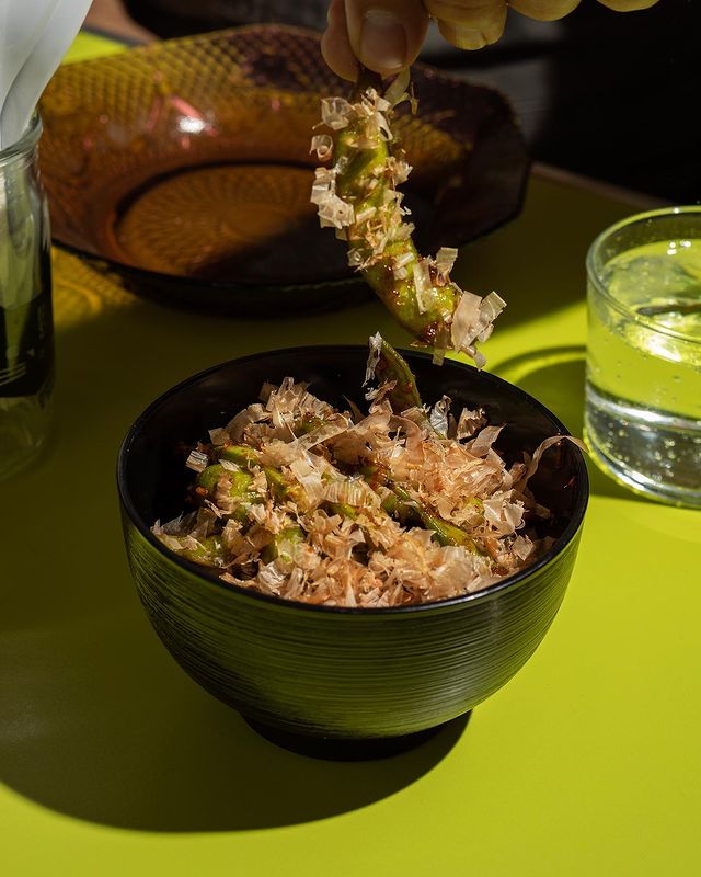 Aunque el espacio es pequeño y en general cada rincón tiene su encanto, te recomendamos sentarte en la barra, desde la cual podrás apreciar toda la acción sucediendo en la cocina. Para acompañar el espectáculo, uno de los ‘snacks’ favoritos son los edamames picantes y los shishitos con dip de zanahoria y jengibre, no aptos para los paladares sensibles al chile.