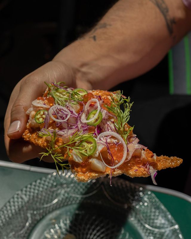 Otro de los consentidos e imperdibles de la casa es el chicharrón preparado con camarón, callo, lubina e ikura, tal como lo pedías saliendo de la primaria, pero con un giro japonés y mucho más gourmet –pero cero pretencioso–. Si prefieres una opción 100% vegetal, no temas, porque en el menú encontrarás varias, como el udon con salsa de ajonjolí para que nadie se quede fuera.