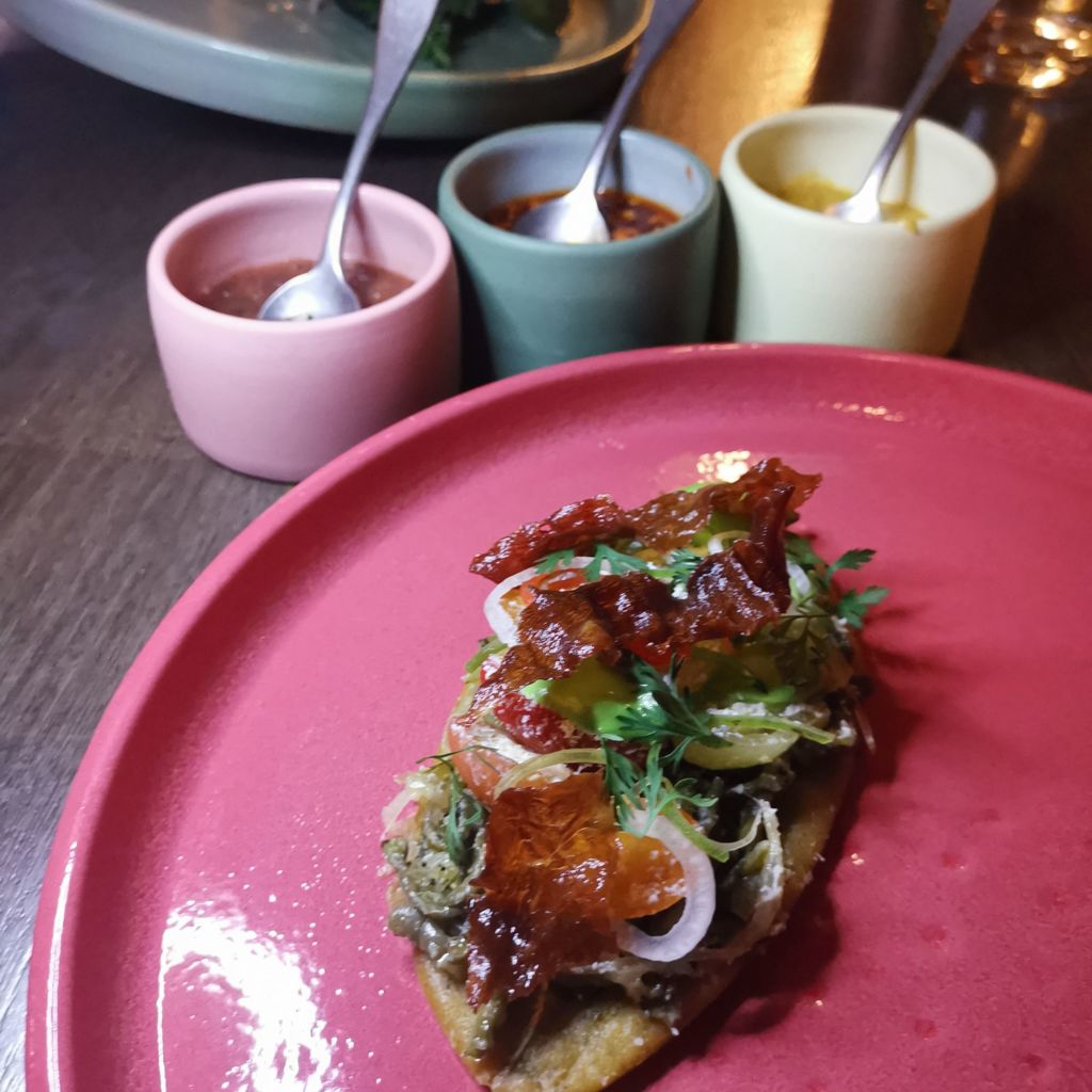 Hay platillos que combinan la creatividad con la herencia mexicana, como la “Mariquita”: una tlayuda servida con una salsa de tomate, queso, jitomate, quelites y crema de rancho encima; haciendo referencia a la pizza Margarita, pero con su propio toque chilango.
