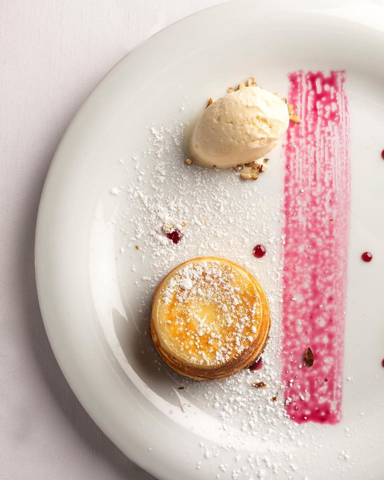 En la carta lo encontrarás como ‘Fondant de queso Idiazábal sobre puré de manzana’. Esta maravilla de los postres se compone de una deliciosa, fina y firme capa que esconde un corazón líquido lleno de sabor a queso Idiazábal. Acompañado con un puré de manzana y helado de vainilla, es una mezcla de sabores salados y dulces que explotan en tu paladar.