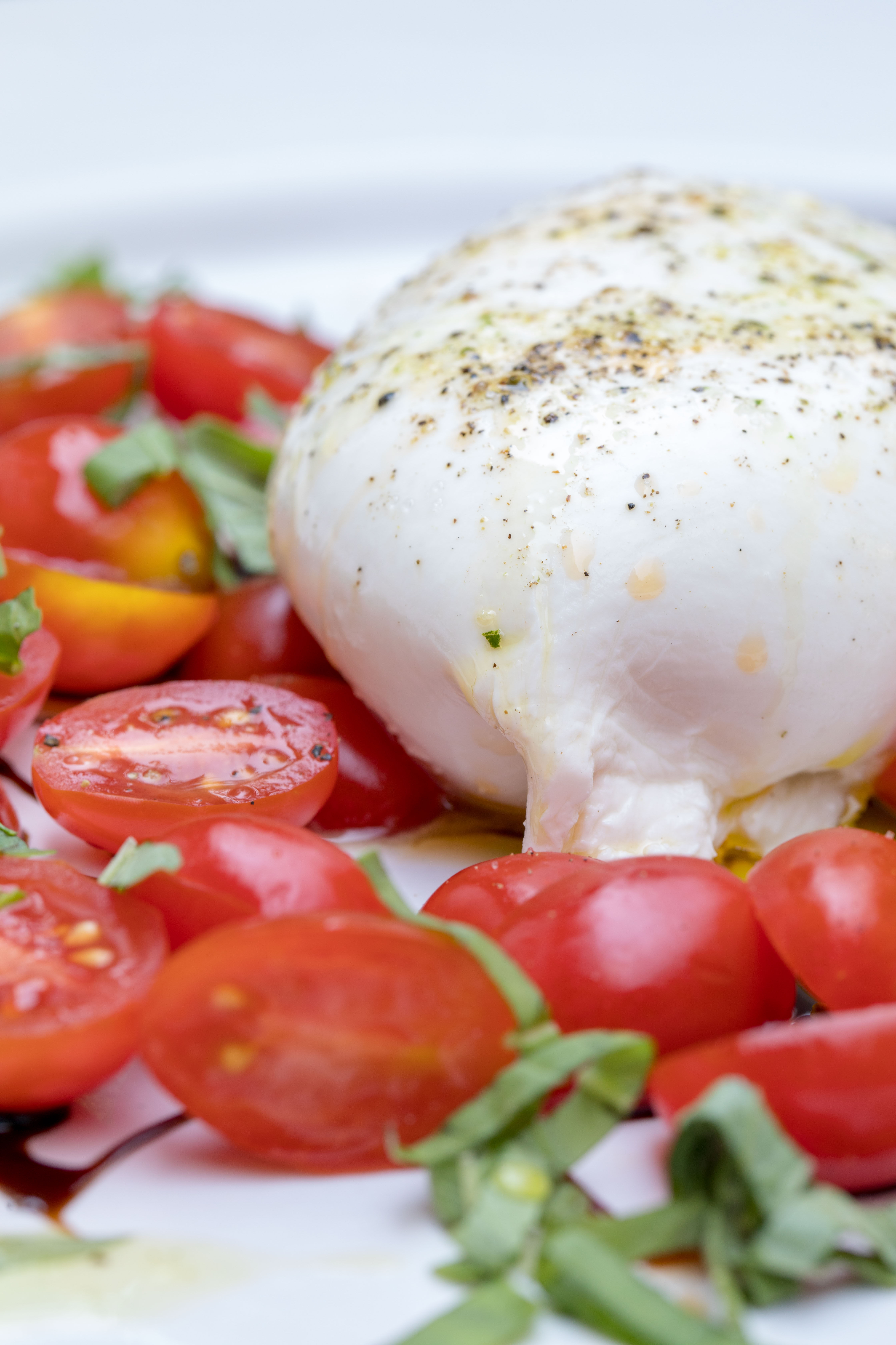 Posteriormente llegó frente a nuestros ojos una de las burratas más espectaculares que hemos probado en la CDMX. Lechosa, cremosa, suave y con un sabor sutil y refrescante. Tal y como debe ser una burrata. Para acompañarla, la sirven con albahaca, pimienta, vinagre y tomate cherry. Una entrada imperdible durante tu visita.