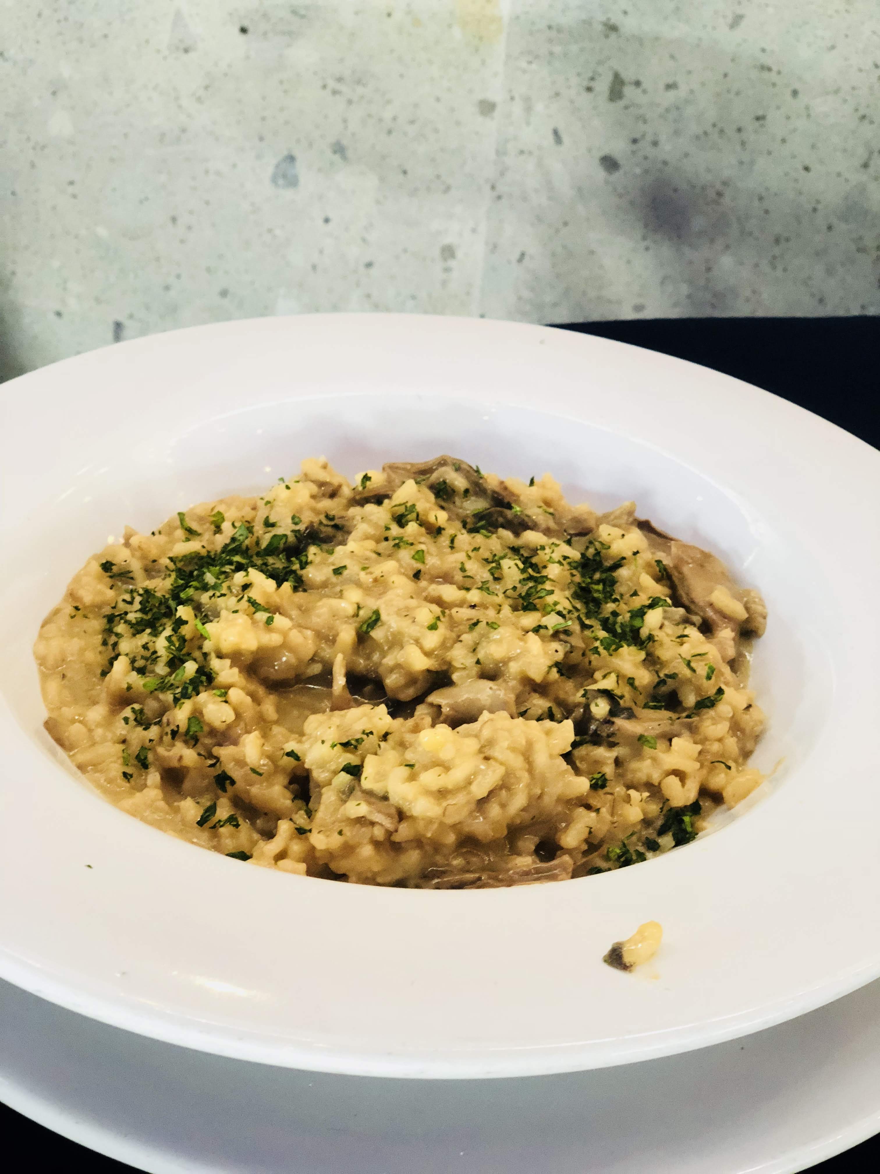 Al poco tiempo, probamos el Crocantino de Berejena. Como su nombre lo dice, destacó por su textura crujiente y su sabor a jitomate y queso gratinado, el cual creaba la mancuerna perfecta con la berenjena perfectamente cocida. Debemos decirte, que si eres fanático del risotto como nosotros, entonces tienes que probar su Risotto de Funghi Poricini su textura melosa y sabor intenso a setas, lo convierten en un plato reconfortante e ideal para una tarde lluviosa en la ciudad.
