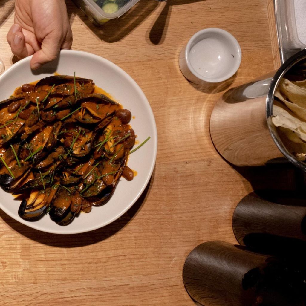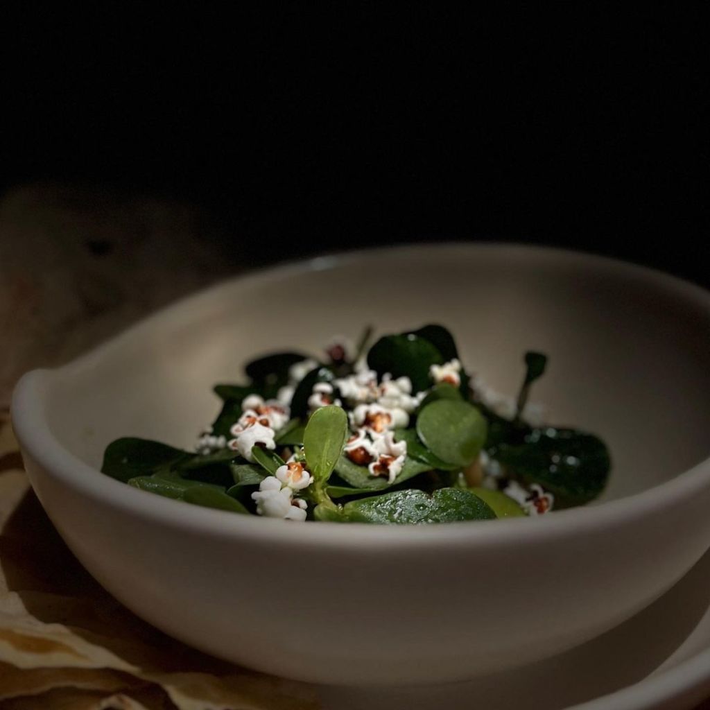 En cuanto a su menú, este responde a los ciclos de cosecha y la disponibilidad de los ingredientes, por lo que muta y se reinventa constantemente, pero mantiene la calidad de sus insumos siempre presente. En sus entraditas para picar se encuentra su paté de pollo con jamaica y sourdough, su crudo de kampachi con melón y zanahoria, y sus mejillones con frijoles de la olla.