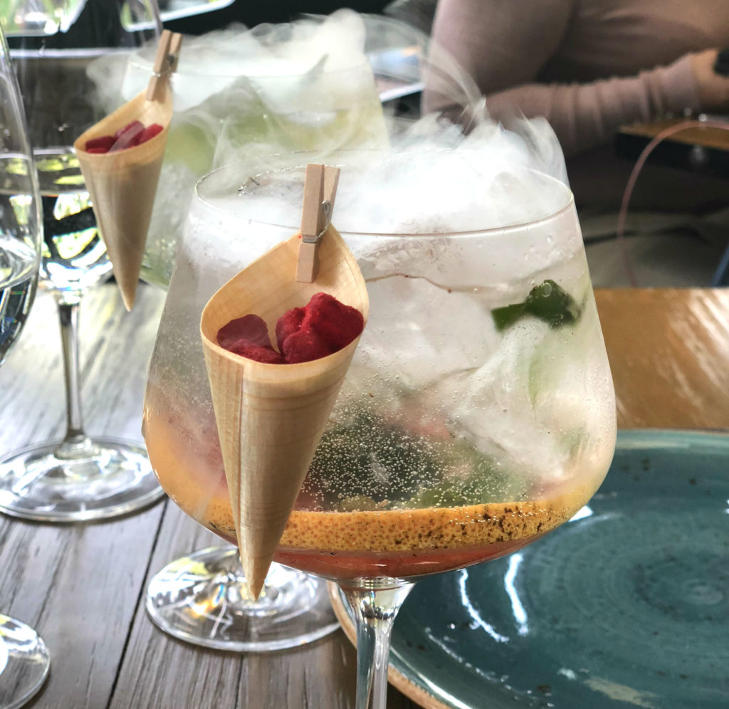 Nosotros te recomendamos que pidas el carrito de gins para que puedas preparar el tuyo con los ingredientes y especies que más te gusten. Lo mejor de todo –además de su refrescante y original sabor– es que lo acompañan con un hermoso “ramito” de piñas enchiladas que simulan unas rosas (divino) y lo terminan con un poco de nitrógeno líquido para completar el acto. Nosotros optamos por una mezcla de cardamomo con toronja que se convirtió en uno de nuestros matrimonios favoritos para este tipo de coctelería.