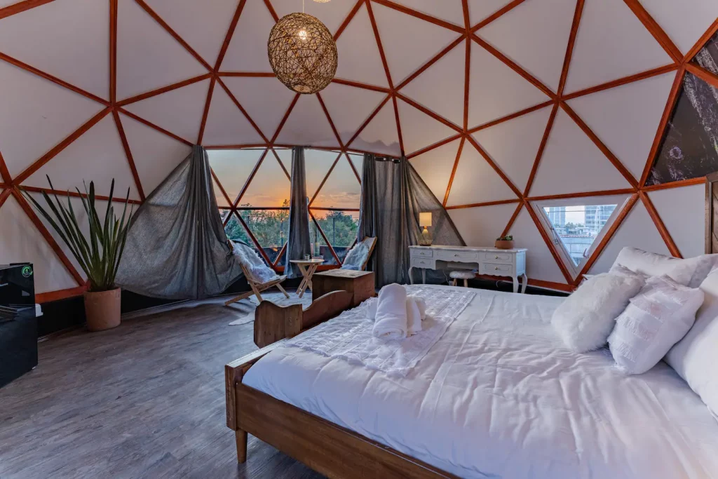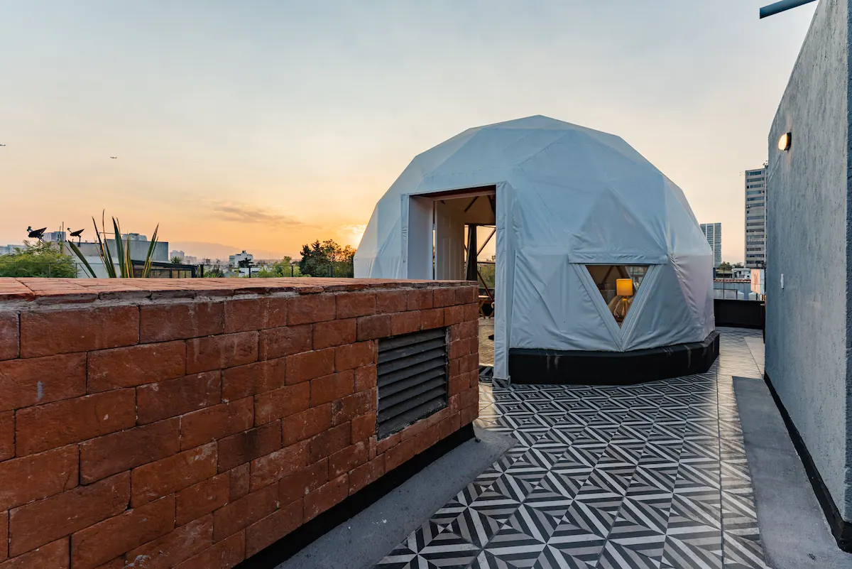 Hace algunos años se puso de moda el glamping, un increíble concepto que permite a sus huéspedes disfrutar una experiencia de campamento inmersa en la naturaleza, pero con todas las comodidades lujosas que tendrían en un hotel. Por sorprendente que parezca, no es necesario viajar al bosque – o fuera de la CDMX – para alojarse en uno de estos espacios, ya que existe un glamping en la Condesa en el que no sólo podrás dormir dentro de un original domo, sino también apreciar algunos de los panoramas más hermosos en la ciudad.