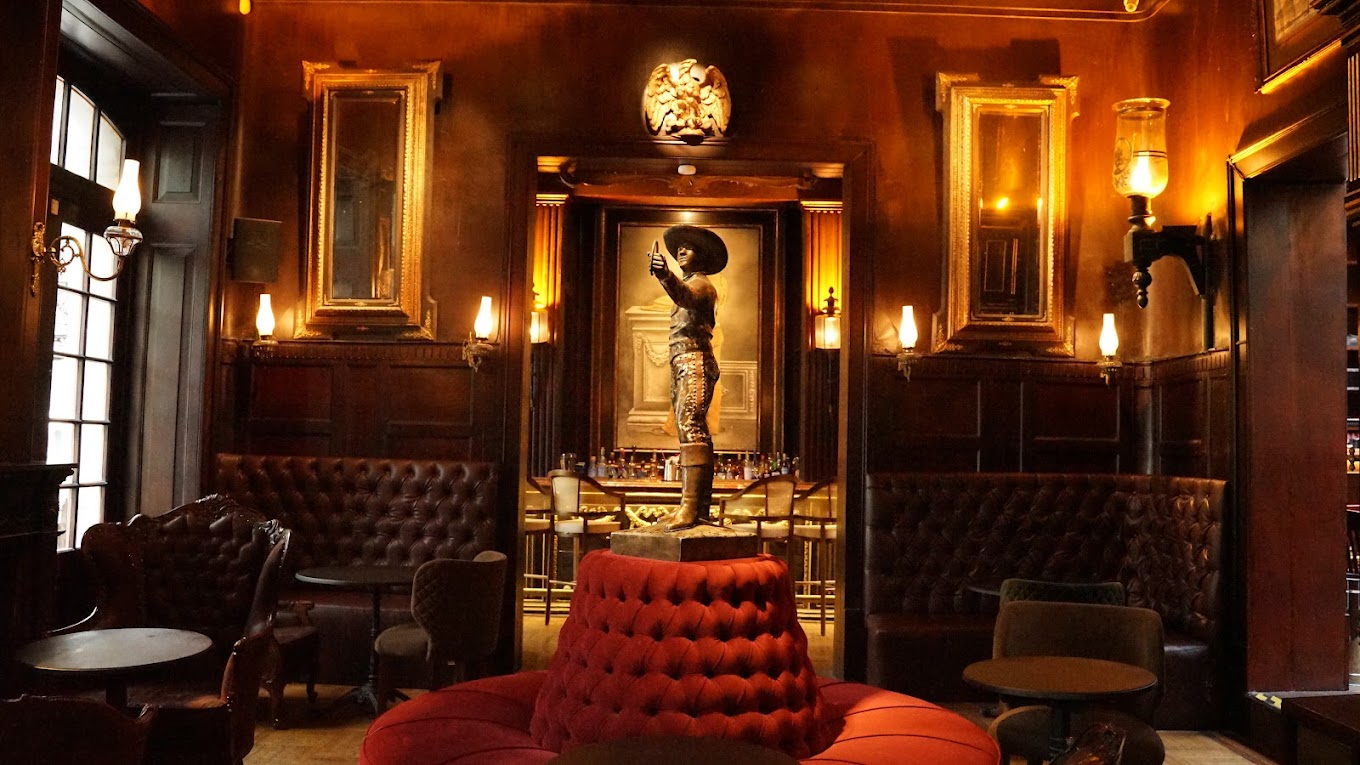 El origen de este proyecto es obra del coleccionista de antigüedades, Daniel Liebsohn, quien junto con Santiago García Galván y George Diamandopoulos apostaron por abrir una cantina, las cuales en su época de gloría fueron el punto de encuentro de escritores, políticos y artistas. Su arquitectura remonta a los tradicionales salones de aquellos días, enormes candelabros, cuadros ostentosos, mobiliario clásico y muchos tintes de nostalgia a su alrededor.