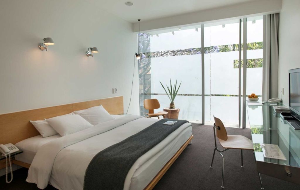 El edificio —proyectado por el despacho TEN Arquitectos, Enrique Norten y Bernardo Gomez Pimienta— tiene una fachada de vidrio esmerilado que proyecta el cielo y las luces de la ciudad, de modo que admirarlo es una experiencia totalmente distinta dependiendo de la hora del día. La arquitectura vanguardista se complementa con las obras de Jan Hendrix y Silvia Gruner, con lo cual este hotel en Polanco se convierte en un referente de la arquitectura y el diseño en la CDMX.