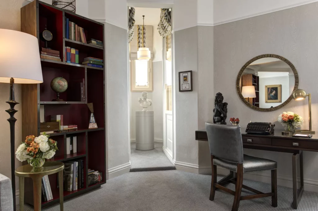 En el quinto piso, en la habitación 552, brilla un pequeño búho dorado en la puerta y una placa que lee ‘JK Rowling Suite’. Es aquí precisamente a donde la escritora se mudó durante seis meses para terminar de escribir la serie que marcó a más de una generación. A pesar de que la habitación fue remodelada y adaptada para darle un aura más mágica, se conservan elementos importantes, como el busto de mármol del dios Hermes, firmado por J.K. Rowling para dejar registro del final de este camino de escritura al cual dedicó una década entera.