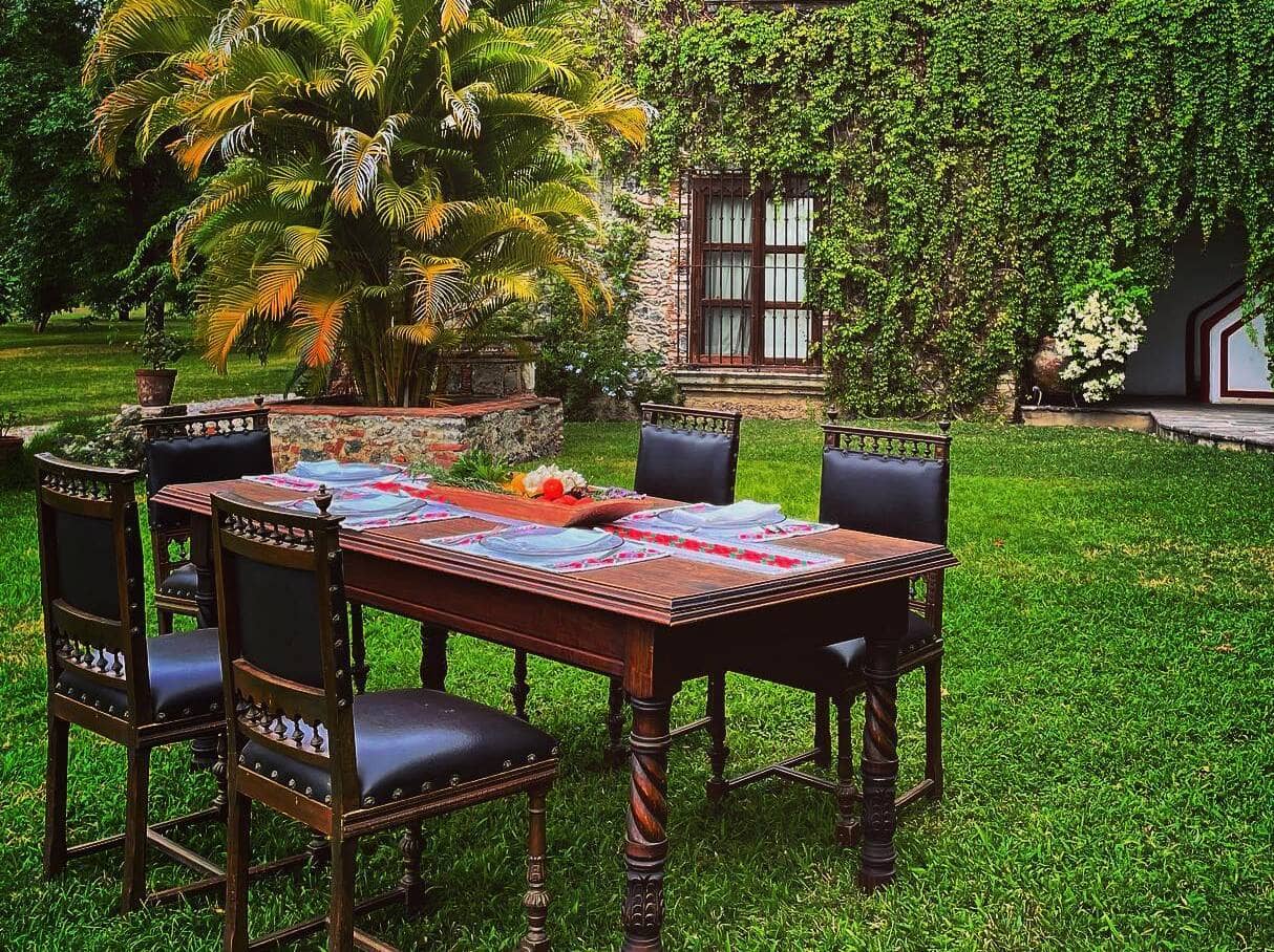 Por supuesto, después de tu comida puedes explorar cada rincón fascinante de la hacienda. Recorrer su capilla, perderte entre los hermosos jardines o admirar las construcciones del siglo XVI que le dan un toque único y lleno de historia. Y si tienes la oportunidad de hospedarte, no lo dudes ni un segundo. Cuenta con solo diez habitaciones personalizadas, cada una fusiona el encanto histórico con el confort moderno. Las suites son amplias, con muebles antiguos tallados a mano, arte virreinal, azulejos de baño divinos y lujosa ropa de cama. Desde las habitaciones, tendrás vistas a los jardines y a los campos de caña. Solo toma en cuenta que el hotel es solo para adultos, y si quieres relajarte aún más, su piscina rodeada de arcos de piedra es el lugar ideal para terminar el día. Sin duda, una experiencia completa para desconectar de verdad y sumergirse en la magia de la historia y la naturaleza.