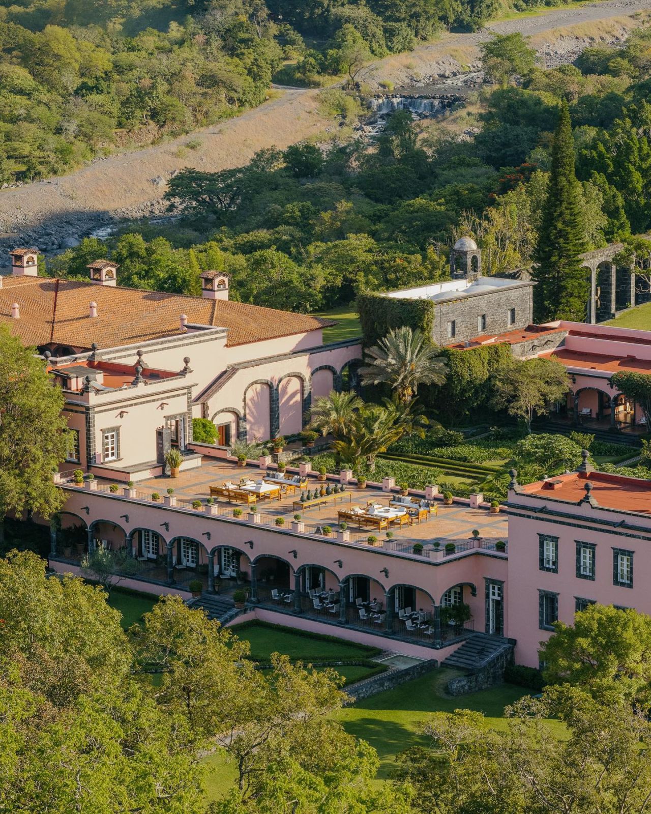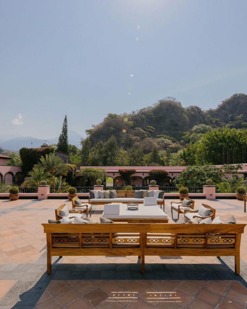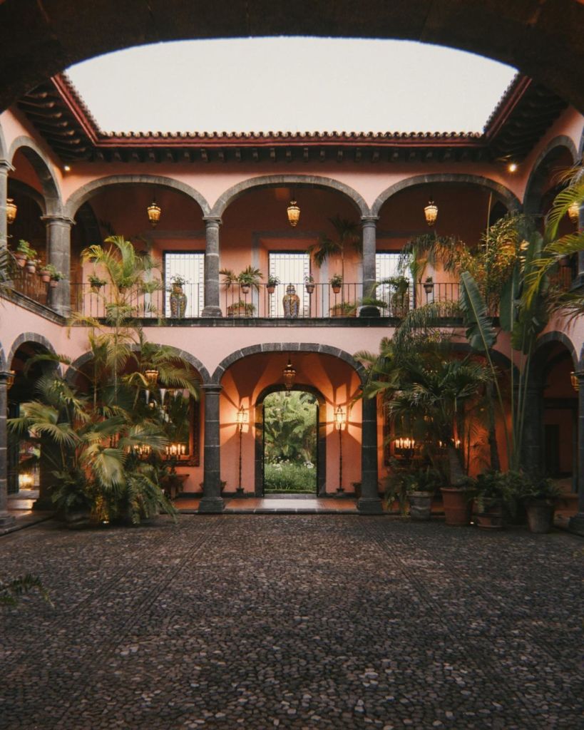 Este hotel tiene más de 200 años de historia, entre sus muros se vivió el esplendor de los cafetales que fueron parte de la historia que los acompaña actualmente. Este hotel está catalogado como uno de los mejores del mundo, y sin duda, hace honor a esa categoría con su increíble arquitectura y diseño. Sus enormes jardines y praderas, las construcciones en cantera rosa con techos abovedados rodeados de naturaleza, hacen que su esplendor se mezcla con los hermosos paisajes del volcán de Colima.