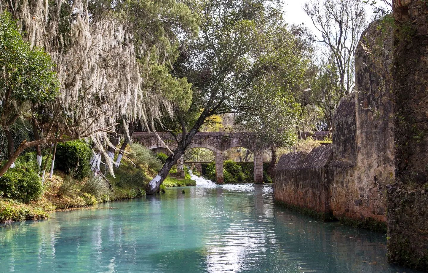 Para convertirla en hotel, muchas partes tuvieron que reconstruirse y otras remodelarse, pero aún conserva muchos de sus muros de piedra originales. Está la capilla de estilo inglés, el casco principal, antiguos túneles, enormes bóvedas, calabozos y unos arcos de piedra que, se dice, el conde copió de los Arcos de Querétaro. En la entrada te recibe un jardín de ensueño atascado de árboles gigantescos, conocido como la Alameda, otra de las áreas que permanecen intactas. También encontrarás unos estanques que parecen lagos de agua cristalina porque son abastecidos con el agua de los manantiales de Huasca. Justo allí, en los estanques, es donde estaba la fábrica con los hornos donde se procesaban los minerales, ahora está inundado, pero aún se pueden ver restos de fierros y viejos aparatos de la época, así como un puente de piedra que cruza la zona y que es ideal para tomarte fotos increíbles.