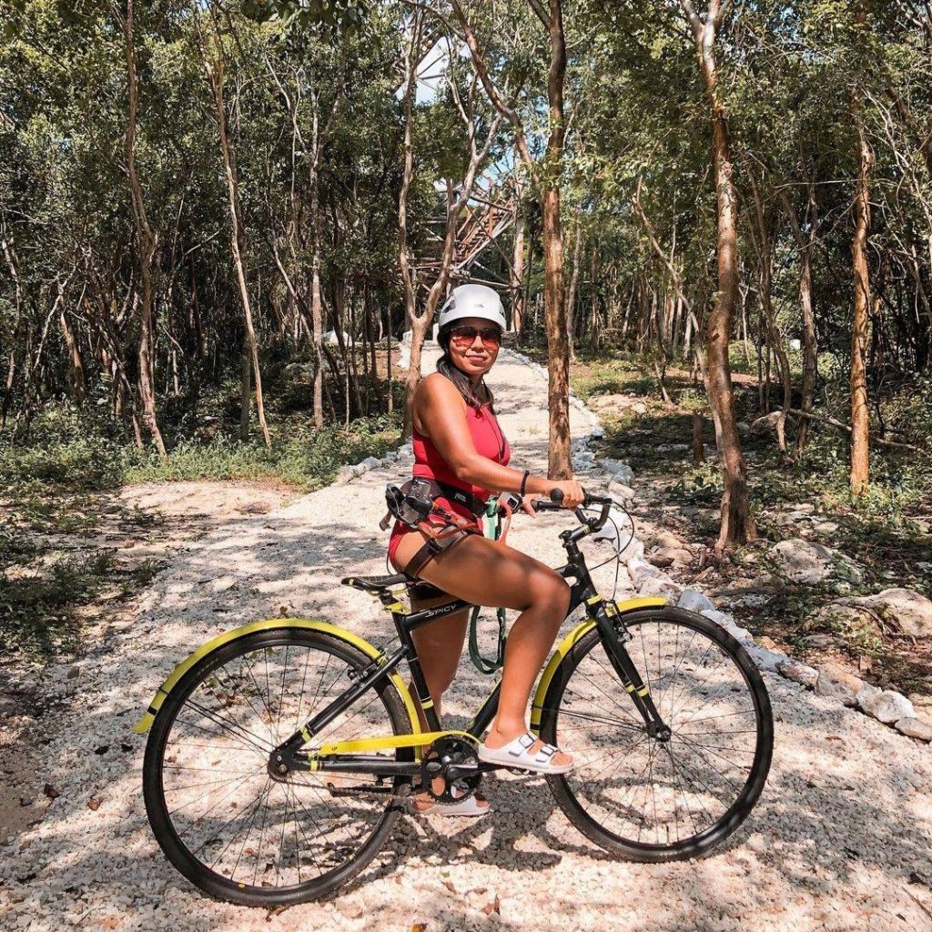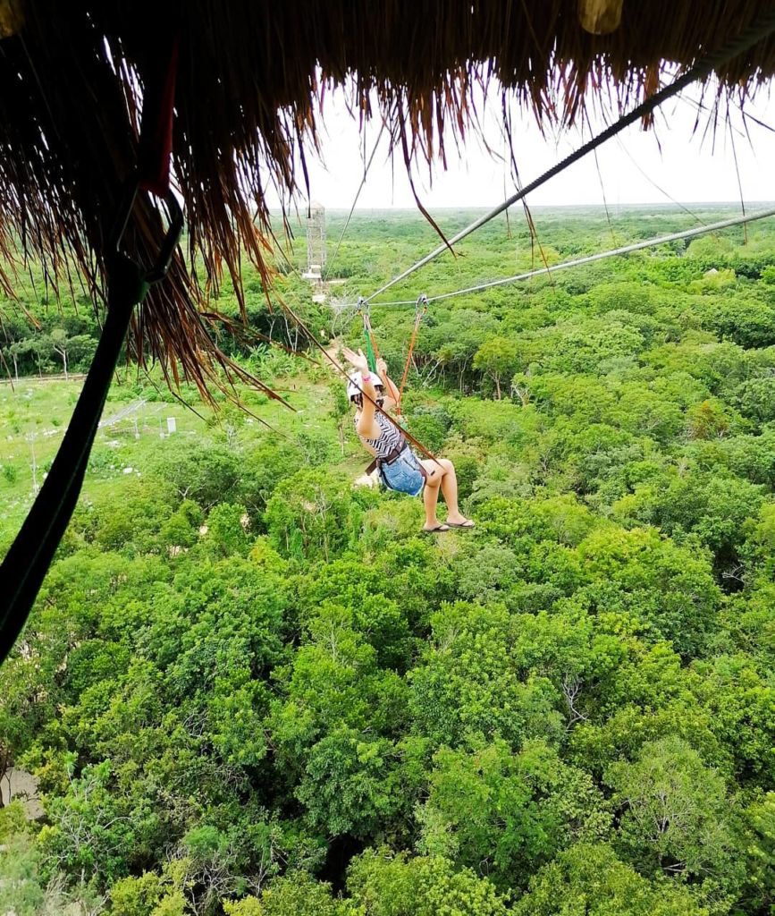 El recorrido comienza con el circuito de tirolesas, el cual se une por tres descensos en donde la adrenalina se vive con las mejores vistas de la selva yucateca. Al subir las escaleras de madera del primer deslizamiento, se puede sentir la brisa cálida y el sonido de las aves entre el ligero chiflido de los árboles. Si eres afortunado o depende como lo veas, la lluvia qué pasa cómo una suave brisa que viene y va, le dará a tu viaje otra sensación que seguramente amarás.