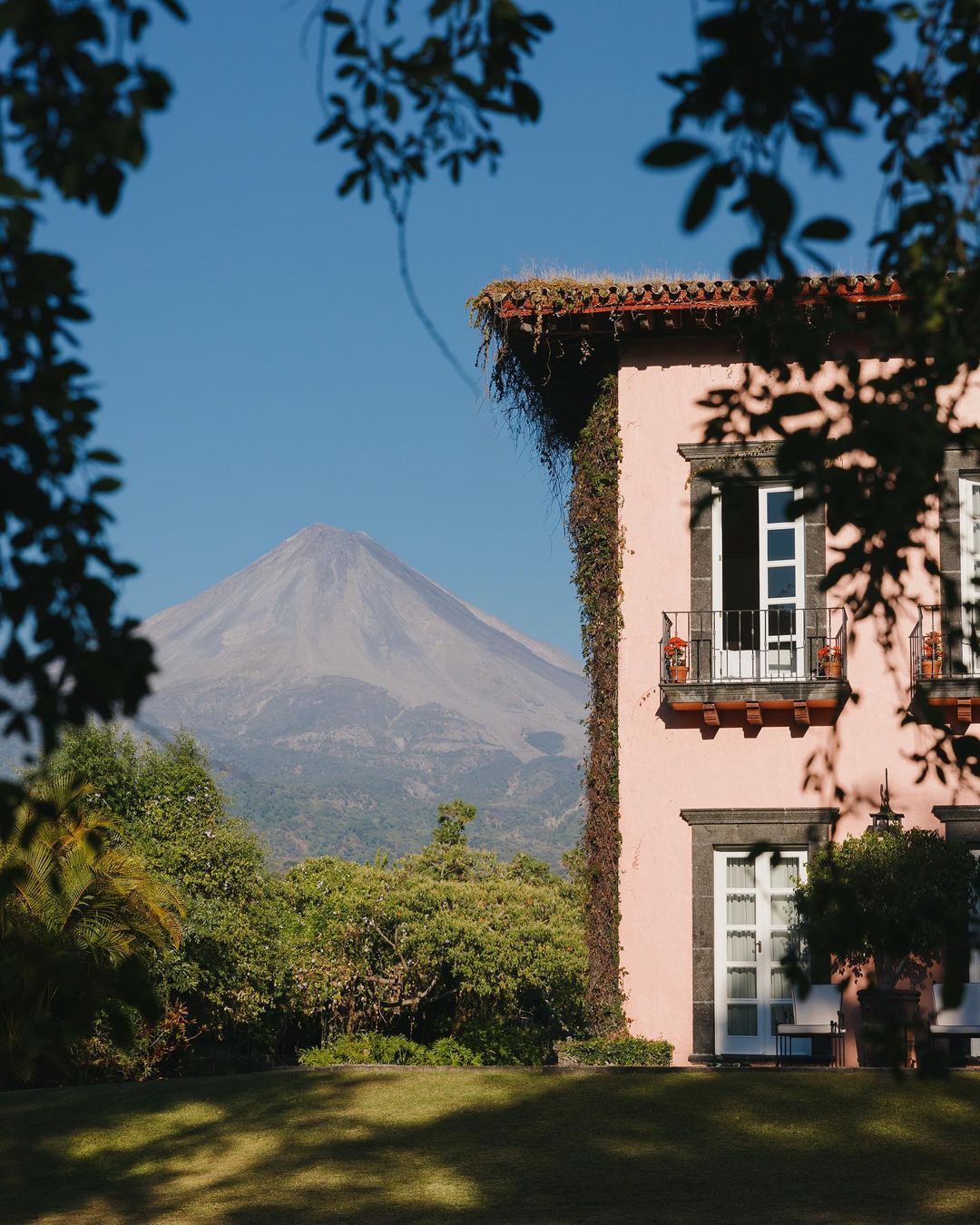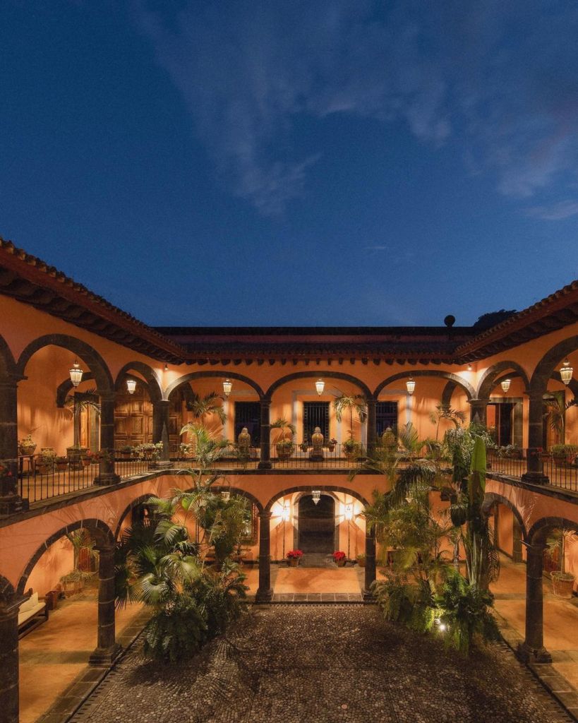 Enclavado en las faldas del Nevado de Colima, entre pinos y oyameles, se encuentra la Hacienda San Antonio, un hotel de cinco estrellas cuyas espectaculares vistas al volcán y sus cumbres nevadas se asoman por puertas y ventanas para inundar de naturaleza cada rincón de este lujoso y acogedor alojamiento. El rosa pálido de los muros contrastan con los verdes del paisaje y el azul profundo del cielo. La decoración conserva todo el encanto de este edificio decimonónico, que hace 200 años albergaba una hacienda cafetalera. Sus 22 suites abren sus balcones y terrazas privadas al río San Antonio, al volcán de Colima y a los espléndidos jardines.
