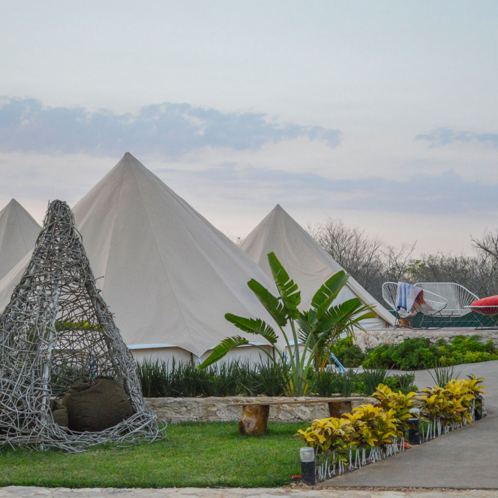 Este maravilloso glamping se ubica en Homún, una localidad del estado de Yucatán la cual es reconocida por sus formaciones rocosas y cenotes milenarios, los cuales esconden los secretos de los dioses mayas y su conexión con la naturaleza. El alojamiento está rodeado de hermosos cenotes de agua transparente, uno de los más hermosos es Yaxbacaltun, considerado como uno de los más grandes de la zona. Esos son algunos de los motivos por los que este glamping de lujo, es ideal para descubrir Yucatán, y aquí te contamos más para que te animes a visitarlo.