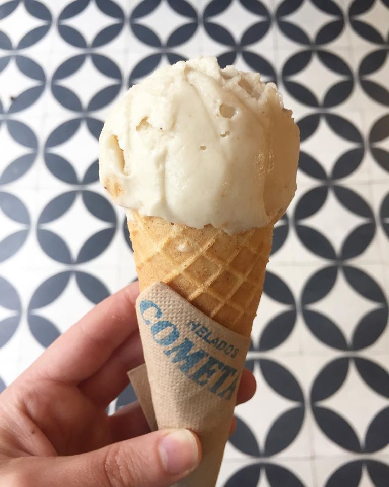 Cometa se caracteriza por sus helados cremositos y sorbetes al estilo francés, pero con toques muy mexicanos. Dentro de su gran variedad de sabores, tienen sorbetes veganos, como el de horchata, que te conquistará por su textura y dulzura.