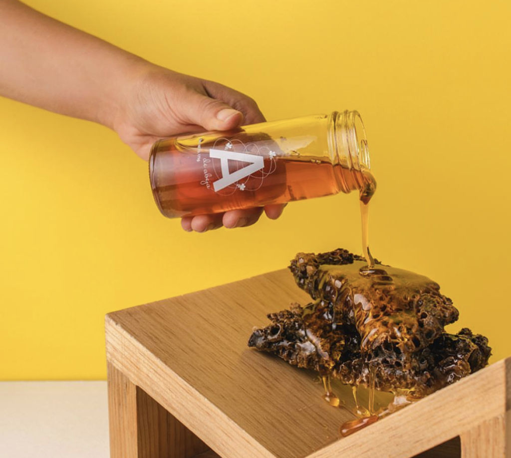 A de Abeja, es un proyecto que invita a descubrir los diversos matices de las mieles mexicanas que buscan promover un consumo responsable y consciente de este producto. El proyecto trabaja acciones colaborativas que muestran los diversos matices de las mieles mexicanas. Es por eso que A de Abeja, decidió abrir el primer Honey Tasting Room en la CDMX. Un lugarcito para explorar los diferentes tipos de miel.