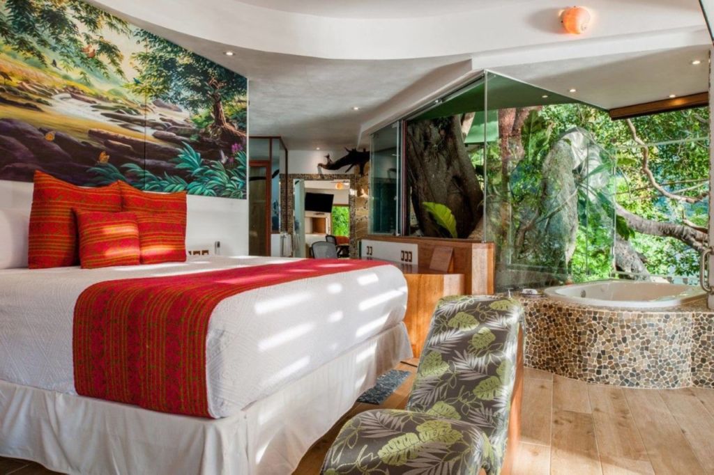 Situado en las protegidas bahías de Boca de Tomatlán, este lugar lleno de serenidad y belleza natural, esconde uno de los hoteles más increíbles de Puerto Vallarta. Siete suites y dos ‘nidos de amor’ – habitaciones de lujo en medio de la selva con infinity pool – en las cuales podrás pasar unas vacaciones llenas de privacidad y lujo. Su espectacular forma hace que durante los amaneceres tengas la mejor vista de la bahía, un oasis que ¡no debes dejar de visitar!