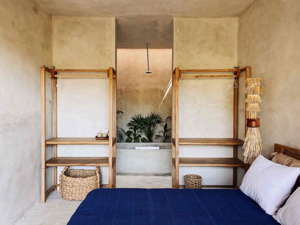 Su nombre Uzulu significa ‘inicio’, referenciando un compromiso de conexión con el origen personal, así como de respeto a los elementos fundamentales de la naturaleza y la organicidad de su espacio. Se puede observar el amor hacia la costa oaxaqueña en cada uno de sus rincones, desde sus muros con acabados en tierra y cal, los productos artesanales de su baño, los árboles que permanecen plantados al interior de su propiedad y la vista privilegiada hacia el Pacífico.