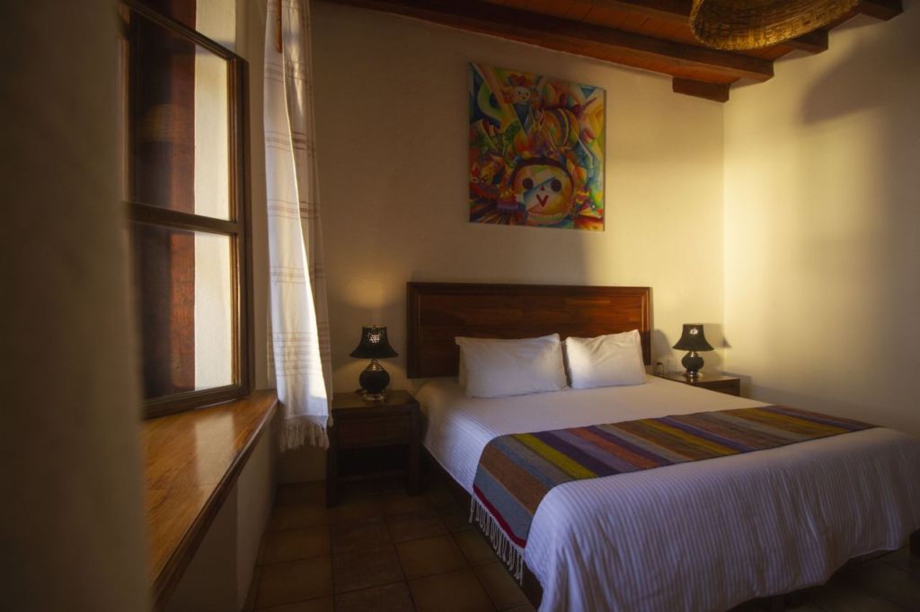 Algunos de los artistas con los que trabajan son Jomer Homerus (@jomerhomerus), Efedefroy (@efedefroy) y Stephanie Chirinos (@lamanosanta_). En el interiorismo las hermosas lámparas de techo son de Lucía Contreras –artesana de Teotitlán del Valle (@ludicomx)– y las lámparas de buró de Benito Cabrera –artesano de Lachigoló–, todos ellos oaxaqueños. En la parte de los murales también se trabaja con artistas independientes y cada uno de los detalles de este hotel, cuenta una historia.