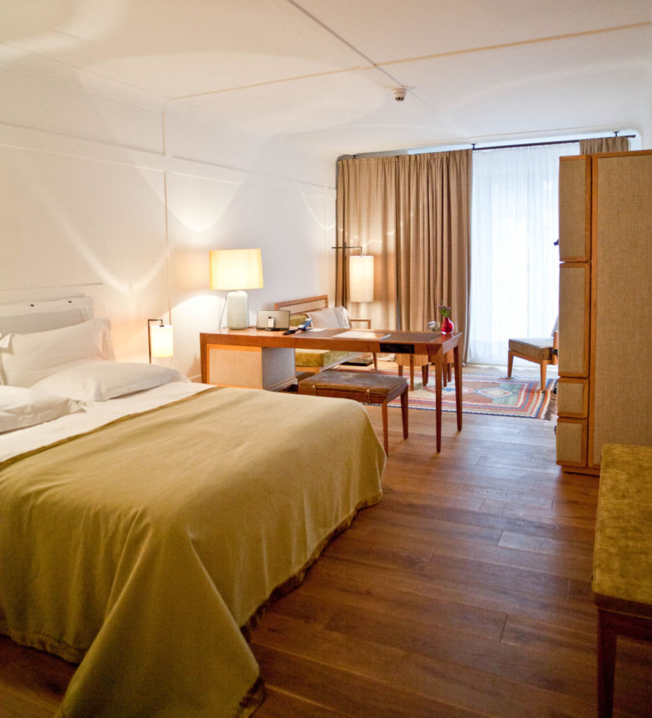 Cada una de las 89 habitaciones de este hotel boutique de cinco estrellas en la zona norte de la ciudad fue decorada individualmente con un estilo clásico pero contemporáneo. En el cuarto piso cuentan con un terraza de wellness desde la cual se pueden admirar las panorámicas más lindas de Munich, así como tres espacios para comer y beber como rey. Considerando el número de habitaciones, podría parecer extraño que este hotel en realidad sea un negocio familiar, pero no se puede negar que conserva una atmósfera hogareña y un trato personal que amenizan cualquier estancia.