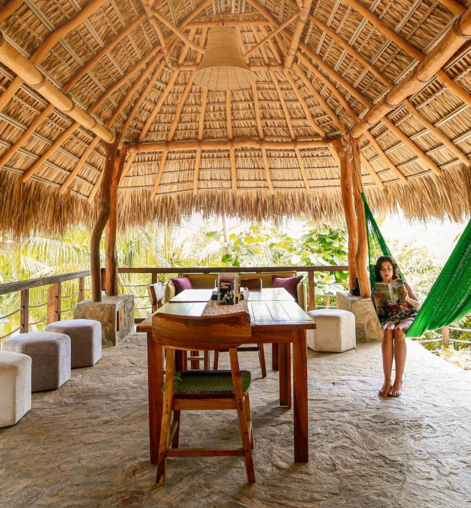 La habitación Ciruelo, es una de las que se encuentran en lo alto, abarcando dos pisos con vista a la selva caducifolia. En esta se aprecian los atardeceres más bellos de Agua Blanca. Casa Piedra de Agua, es un hotel boutique en Oaxaca, libre de pretensiones en el cual podrás vivir unas vacaciones sin preocupaciones y con todo el encanto de una de las playas vírgenes más bellas de México.