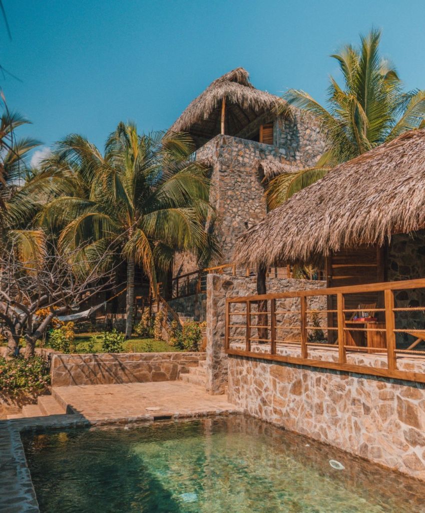 Playa Agua Blanca se encuentra entre Puerto Escondido y el crucero de Mazunte en el municipio de Santa María Tonameca, este lugar es una fantasía para los viajeros que buscan alejarse del estrés y disfrutar un espacio lleno de calma y relajación. Casa Piedra de Agua es un hotel boutique en Oaxaca, muy cerca de esta playa en el cual podrás nadar en sus albercas naturales y reconectar con la naturaleza mediante talleres de yoga y meditación.
