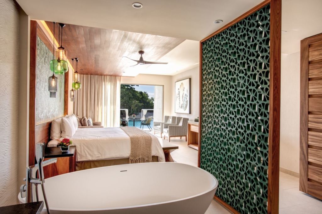 En medio de la jungla del Caribe mexicano se encuentra este hotel de lujo que, además de ser sustentable con el medio ambiente, tiene los espacios más lujosos y bellos para pasar unas vacaciones envidiables. Las habitaciones de este lujoso resort cuentan con vista al mar y cada una tiene su propia tina y entrada personal a la terraza que da directamente a las playas de Riviera Maya. Tiene suites con infinity pool con vista a la jungla.
