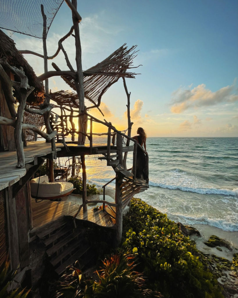 Este eco-hotel es el spot de moda que todo viajero tiene en su bucket list. Cuenta con una playa privada que está rodeada por dos formaciones rocosas que al subir la marea hacen un espectáculo de olas único. Durante el día es perfecto para nadar en sus calmadas aguas que siempre tienen la temperatura idónea, mientras que al caer la noche ofrece experiencias gastronómicas dignas de probar. Cuenta también con habitaciones que dan directamente a la playa y algunas dentro de la selva.