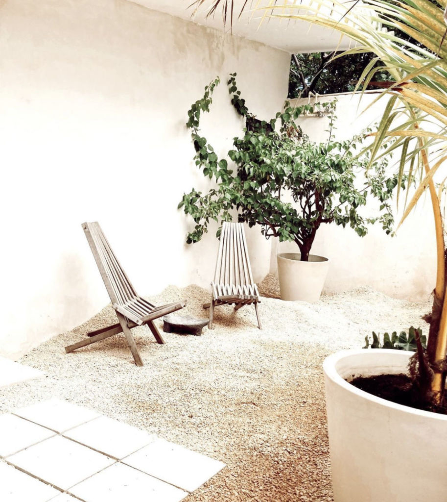 Al entrar se observa la terraza y una enorme mesa que te da la bienvenida como si fuera el patio de tu casa. Este espacio rodeado de vegetación crea un ambiente selvático que resalta por los muros blancos de piedra caliza y los pisos de durmientes de ferrocarril recolectados de diversas partes de Yucatán. La decoración también es parte importante del hotel ya que mantiene la línea de colores tierra, creando una armonía perfecta entre la construcción y las áreas al aire libre.