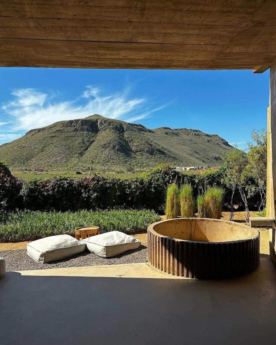 Este increíble hotel boutique en Todos Santos nos coloca en medio del desierto de Baja California Sur, donde los paisajes siguen siendo dominados por las cactáceas y los cielos azules que contrastan con las tonalidades terracota de la arena, pero donde ya comienza a percibirse el olor de la brisa marina. Paradero alberga 41 suites cuyo diseño bohemio busca enaltecer la experiencia sensorial y promover la contemplación con espacios al aire libre y una alberca infinita que te hará sentir como si te encontraras en un oasis. El restaurante del hotel también basa su cocina en los productos locales y de campo, y sirve los platillos en mesas sumergidas en un jardín de suculentas y flora desértica que sorprende por la enorme variedad de colores y formas de estas especies.