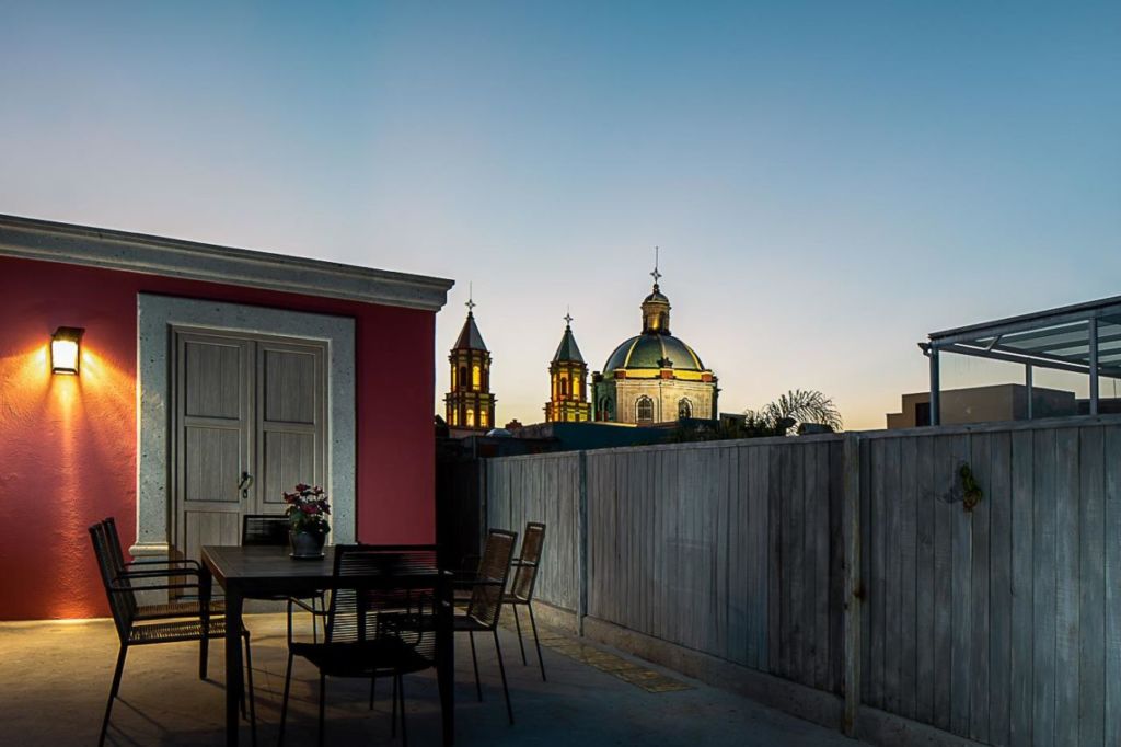 Localizado al interior de una preciosa casona con más de 100 años de antigüedad, que capta y resume por sí sola el espíritu colonial y estético del Centro Histórico de Querétaro, se encuentra este bonito y acogedor hotel boutique, cuyas ocho habitaciones te conquistarán con su diseño y con todos sus servicios que garantizan lujo y confort: agua purificada por un sistema de punta, puertas y ventanas termoacústicas, cama queen o king size con sábanas de bambú y edredón de plumas, aire acondicionado, internet de alta velocidad, televisión con cable, cafetera Nespresso y desayuno completo. Enamórate de sus preciosas paredes rosas que armonizan a la perfección con los detalles en piedra y las flores de sus jardines internos.