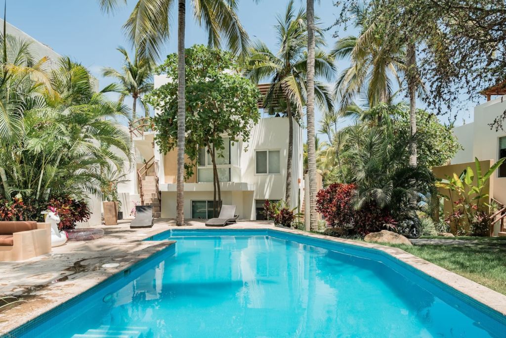 Otra buena opción para visitar San Pancho es hospedarse en Sayulita, ubicado a tan sólo 15 minutos de este asombroso destino. En este Airbnb encontrarás una atmósfera íntima y tropical, rodeada de palmeras y con una cocina abierta, alberca y terraza con hamaca. Hospeda hasta dos personas, por lo que es el sitio perfecto para una romántica escapada en pareja.
