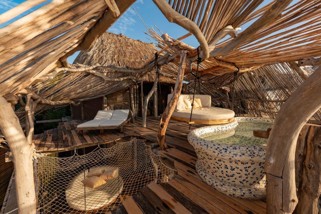 María del Mar es uno de los hoteles boutique en Tulum más exclusivos y encantadores, pues ofrece una atmósfera íntima, lujosa y personalizada, ideal para quienes prefieren instalaciones con deslumbrantes vistas del océano y son amantes del diseño mexicano contemporáneo. En este alojamiento podrás disfrutar de una experiencia gastronómica completa en su restaurante Mina, el cual se destaca por su cocina que fusiona platillos mexicanos y argentinos y está posicionándose como uno de los mejores restaurantes en Tulum.