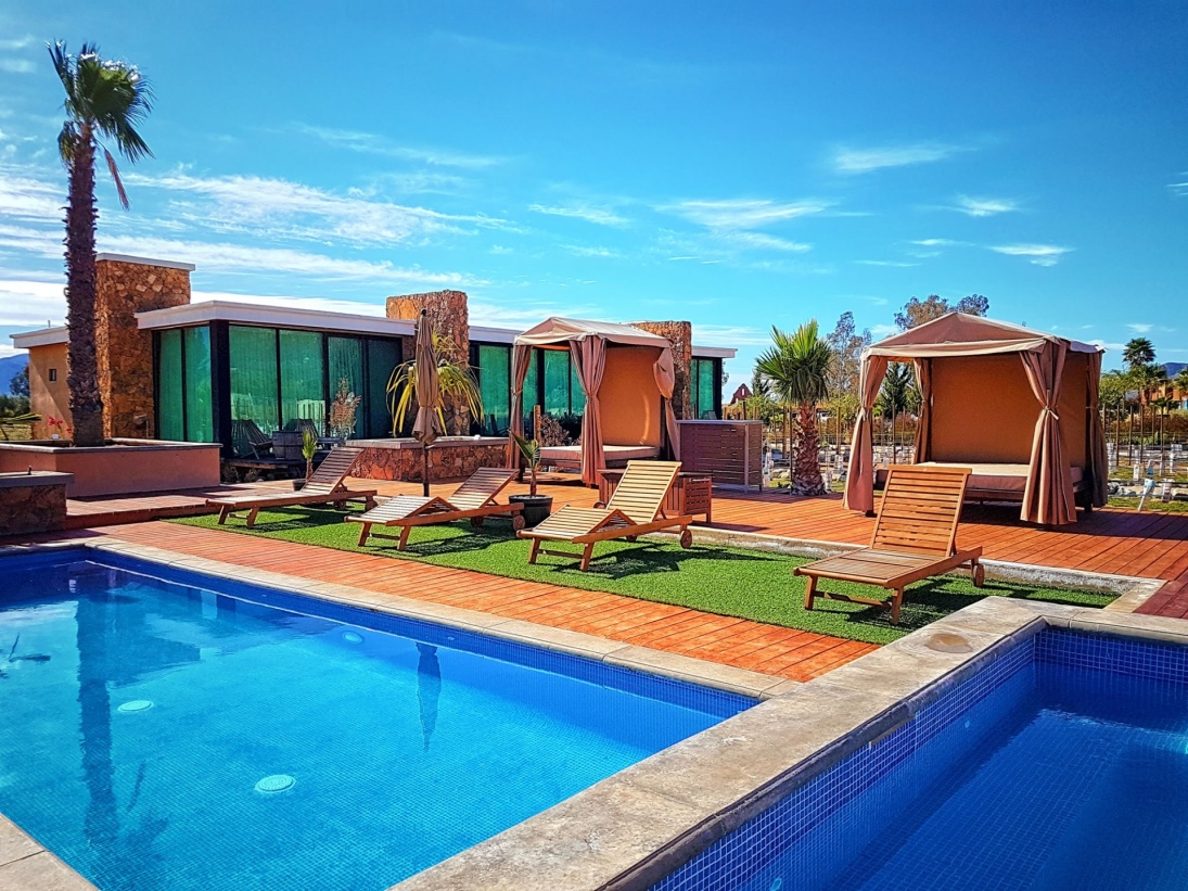 Un espacio que invita a sus huéspedes a disfrutar de áreas comunes en contacto con la naturaleza, respetando el entorno y admirando el maravilloso paisaje del Valle de Guadalupe. El hotel se conforma por 20 habitaciones independientes ocultas en la ladera de una montaña. Al tener un concepto eco-friendly cuida en la mayor medida posible del entorno sin sacrificar el lujo y el confort de sus visitantes.