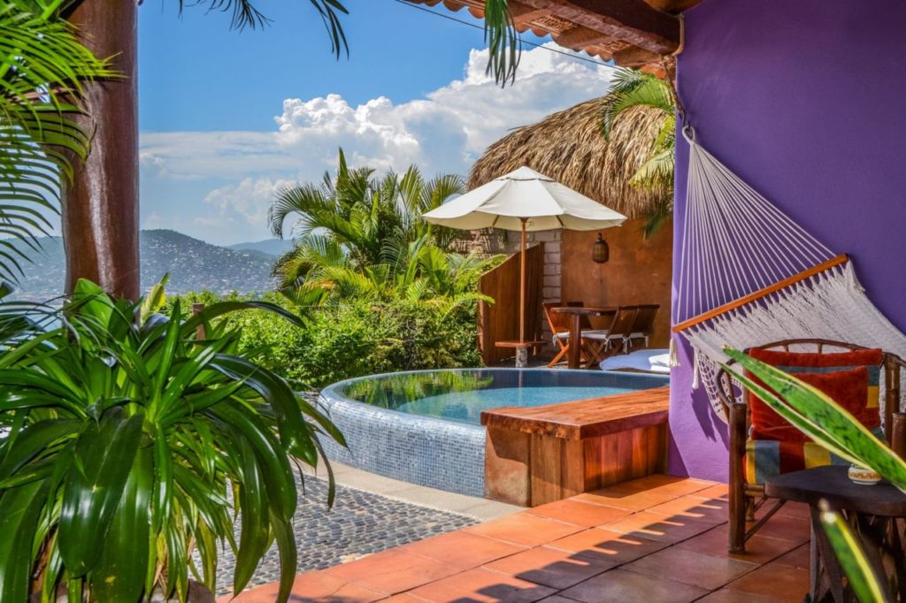 Este precioso hotelito ofrece la oportunidad de alquilar la casa completa, con siete habitaciones, o solo hospedarte en alguna de ellas. Su concepto de bed & breakfast lo convierte en un alojamiento muy cómodo y completo para los viajeros que busquen disfrutar de las playas de Zihuatanejo, así como de su encantador pueblito. El lugar te permite disfrutar de la maravillosa vista desde sus terrazas privadas, relajarte en sus tinas y regaderas al aire libre, así como divertirte o reconectar contigo mismo con sus clases de surf o de yoga.