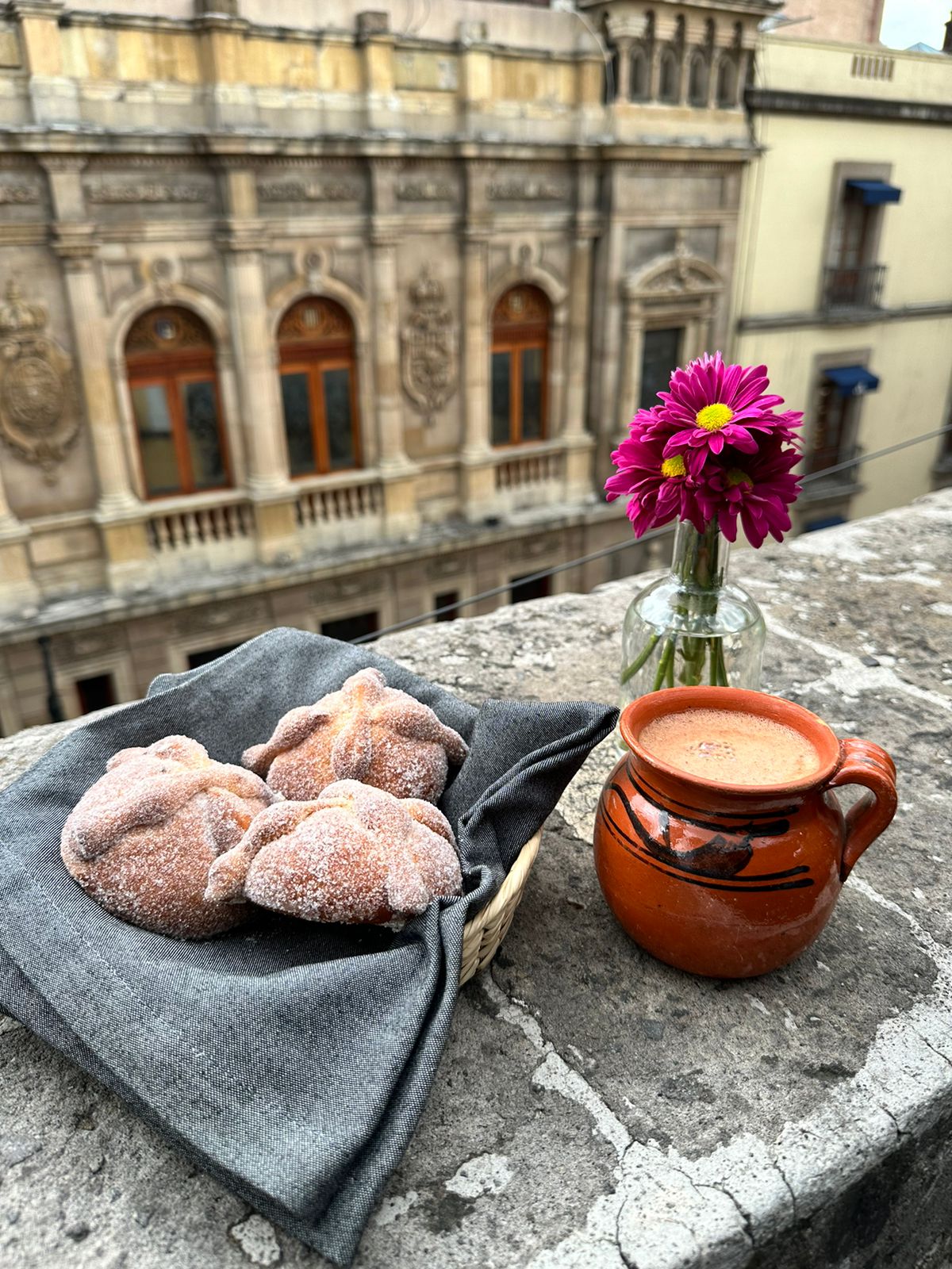 Si de hoteles boutique espectaculares se trata Dowtown México en el centro de la ciudad es uno de los elegidos. El edificio precioso clásico pero al mismo tiempo innovador es impresionante. Más alla de su locación privilegiada y vistas inolvidables al centro histórico, su oferta gastronómica es de alto nivel. En esta estación Dowtown ofrece a sus visitantes diferentes tipos de pan de muerto y un postre del mismo. El tradicional, –espolvoreado de azúcar y aromatizado con naranja y azahar– uno relleno de chocolate mexicano semi amargo y otro relleno de nata artesanal de Querétaro. En cuanto al postre de temporada, es un pan de muerto espolvoreado con azúcar y ceniza, relleno de piña caramelizada y helado de vainilla artesanal, una explosión de sabores en boca.