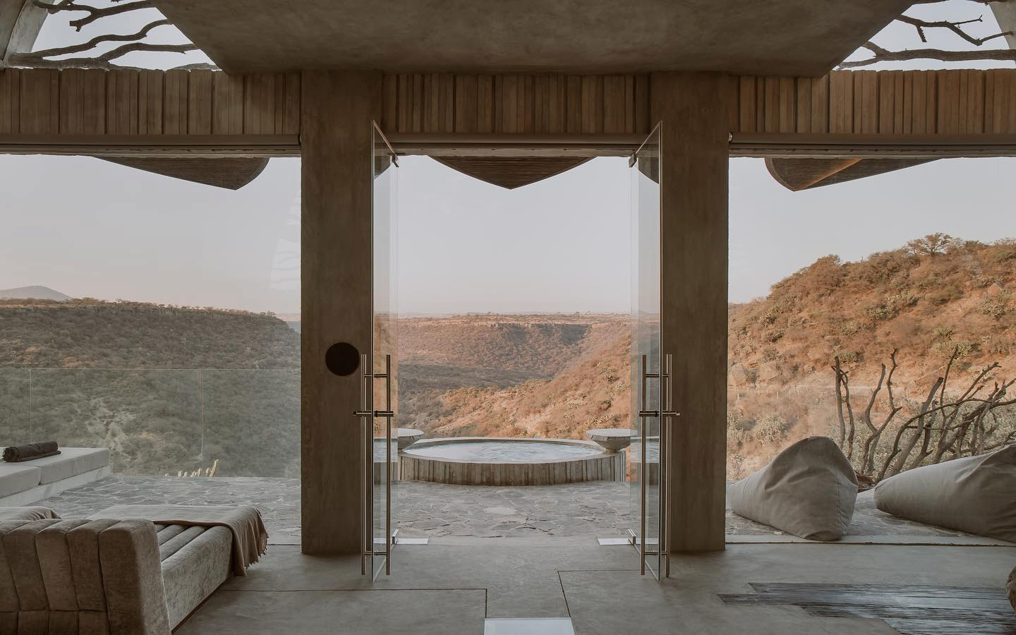 Ubicada en la cima de las barrancas de Santa Bárbara, La Cueva. La magia de este alojamiento en Querétaro radica principalmente en su diseño y arquitectura, un proyecto liderado por el arquitecto, León Higuera, quien para materializar este hospedaje basó su concepto en la creación de un sitio que, además del descanso y la desconexión fuera un templo de la naturaleza y la exclusividad. Así mismo buscó inspiración en la belleza de la imperfección, permitiendo utilizar distintos materiales provenientes de la naturaleza para darles vida como troncos, ramas, piedras, entre otros que también fueron extraídos de la región.