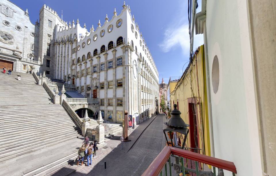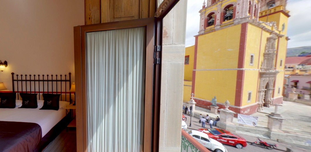 Si lo que quieres es estar justo en medio de la acción –y de toda la belleza que ofrece una ciudad como Guanajuato– esta es la opción. Este hotel no solo destaca por sus lindas instalaciones, sino por su extraordinaria ubicación. En su parte frontal, colinda con la emblemática Plaza de la Paz, a unos metros de la Basílica Colegiata de Nuestra Señora de Guanajuato. Por la parte trasera colinda con las escalinatas de la Universidad de Guanajuato, e incluso es posible admirarlas desde algunas de sus habitaciones. Todo a no más de 20 metros de distancia.