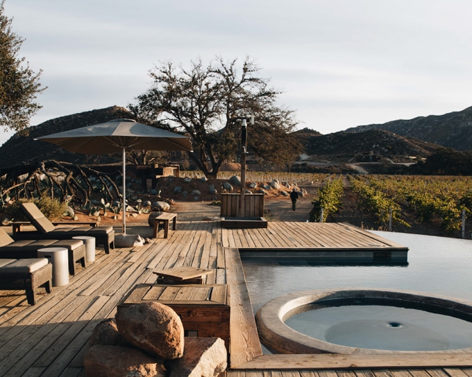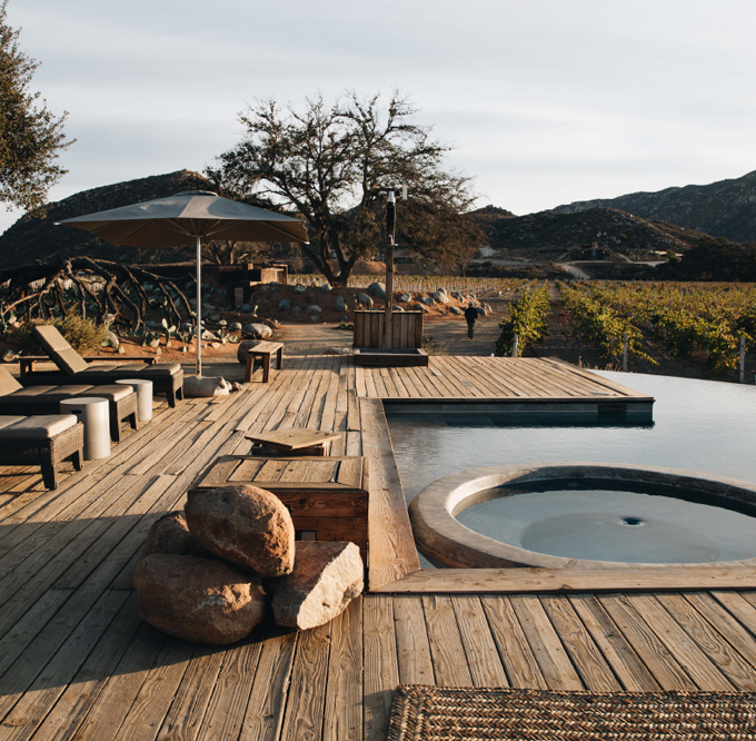 Luna de Sol es uno de los hoteles boutique en Valle de Guadalupe que enfoca su espacio en experiencias wellness y de bienestar personal, resultando en un maravilloso escape paradisiaco y rodeado de sorprendentes cultivos de la vid. Podrás disfrutar de clases de yoga personalizadas, sesiones de sound healing, masajes terapéuticos, faciales y productos de herbolaria natural; si lo deseas, puedes adquirir un day pass que te permitirá disfrutar de sus instalaciones por un día completo.