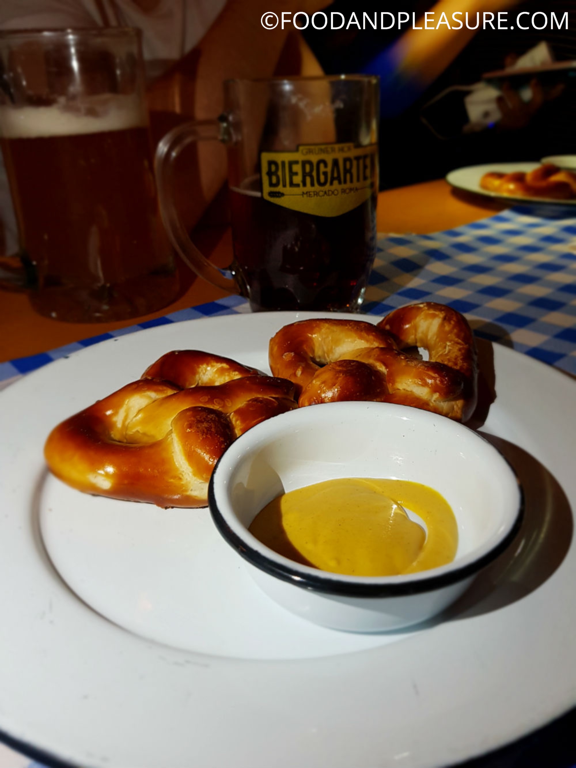 Pero no solo por eso salimos encantados, también su comida dejó a nuestra barriga satisfecha y claro que a nuestro corazón contento, ya que salimos encantados con sus tradicionales pretzels con mostaza, que fue el primer platillo que llegó a nuestra mes y la entrada más exacta para la ocasión.