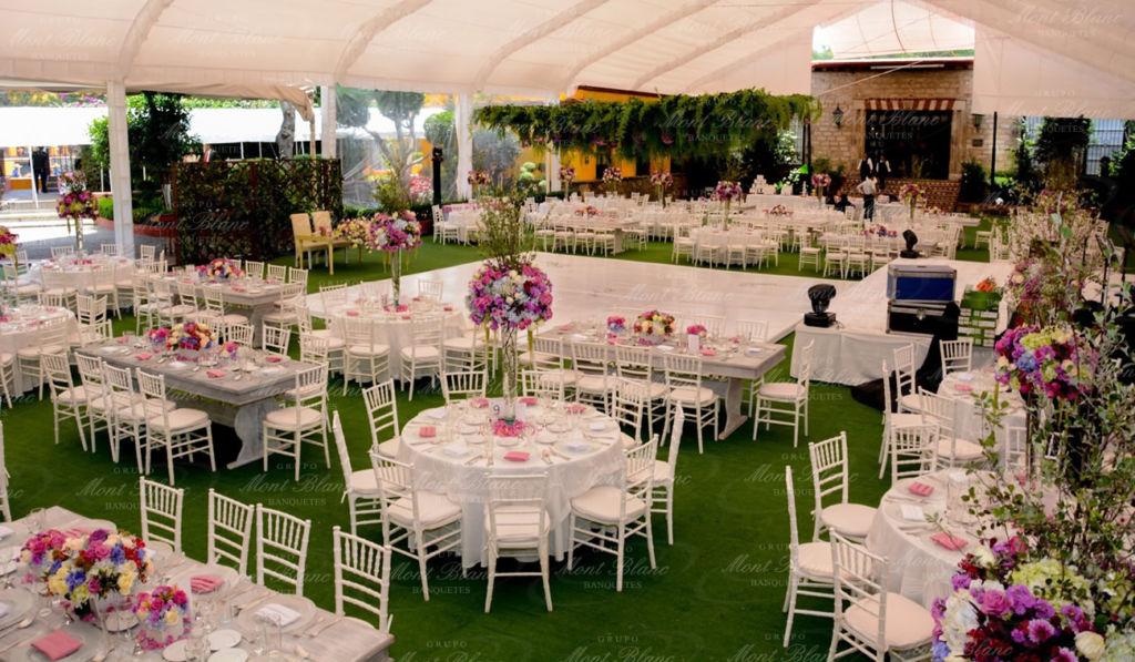 En este lugar hay un jardín hermoso, ideal para albergar una boda, pues tiene una capacidad para 700 personas. El recinto es administrado por Grupo Mont Blanc Banquetes y ofrecen una gran cantidad de servicios para hacer de tu celebración un majestuoso y especial evento.