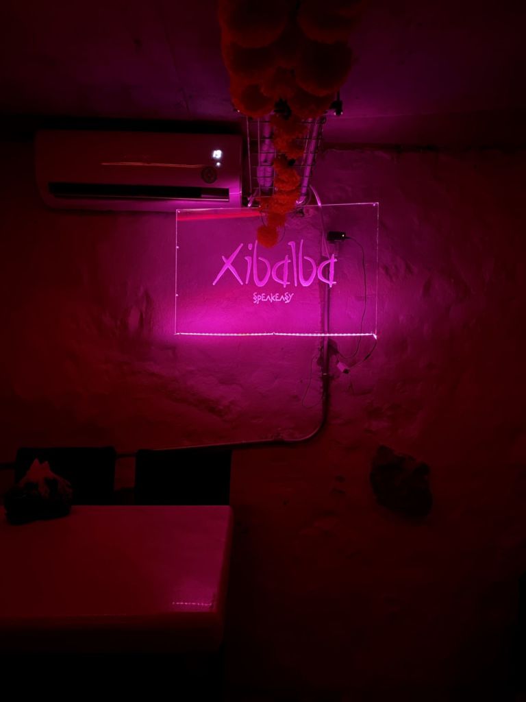 Luego de una ronda de postres y carajillos, si los visitas a la hora de la cena, la experiencia se extiende hasta el nivel subterráneo donde se encuentra su speakeasy: Xibalba. Es el primer y único bar secreto de San Miguel de Allende y está inspirado en el inframundo maya, por lo que tendrás que bajar las escaleras iluminadas por velas y comenzarás a percibir un delicioso aroma a copal que te guiarán hasta la oscura barra de este lugar que te hará olvidarte por completo del concepto previo de Kab’an para disfrutar la noche.