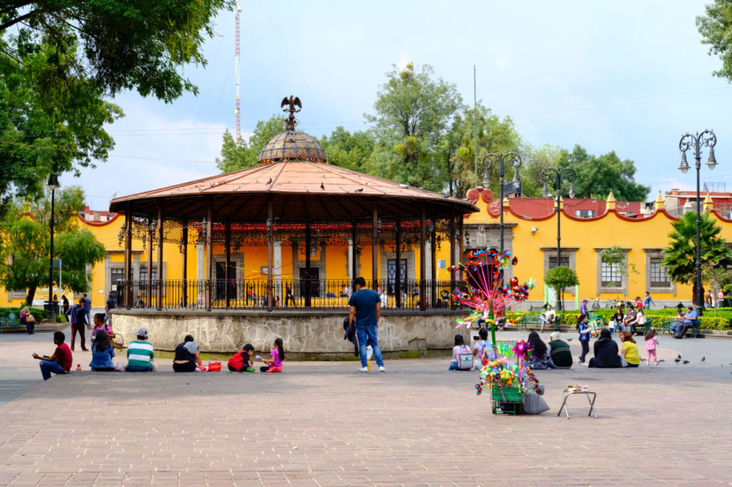Este emblemático kiosco desmontable con sus 19 vitrales fue traído desde París durante el porfiriato para celebrar el centenario de la independencia, y se ha convertido en un punto de referencia para quienes gustan de pasear por el centro de Coyoacán. Es el lugar ideal para cambiar un poco los aires y descansar después de un paseo por los empedrados de este barrio, mientras disfrutas de una nieve o un esquite de los locales alrededor de la plaza.