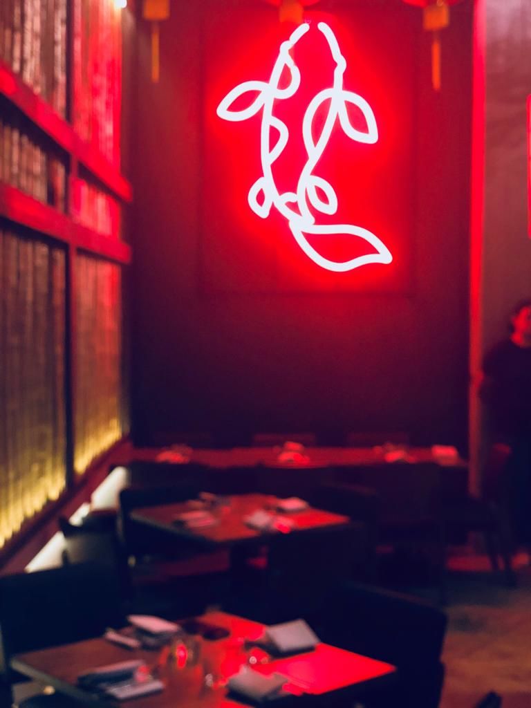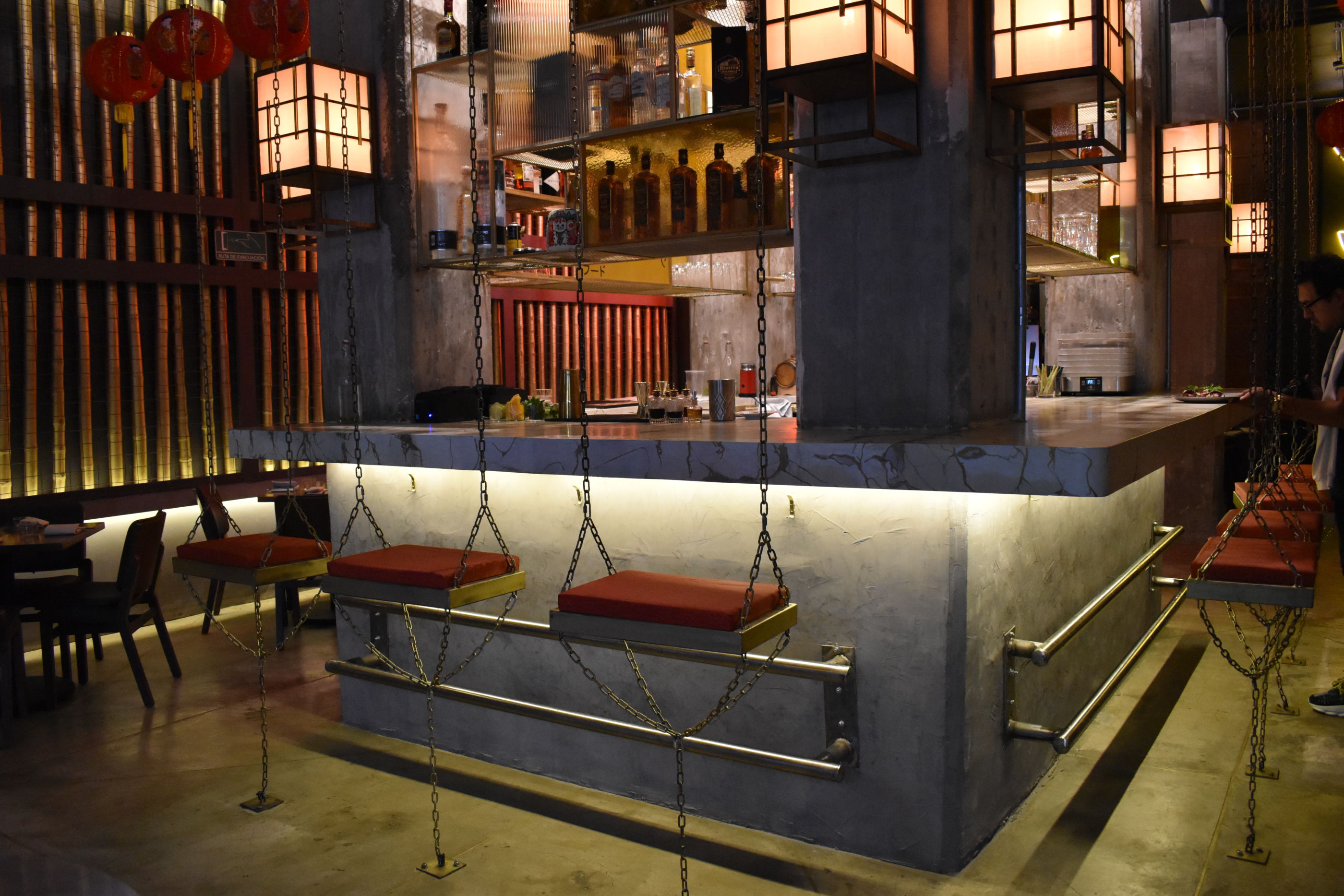 El lugar es increíble, con luces por doquier, letreros neón y materiales como bambú y concreto –para hacer alusión a las calles de Asia–. Durante tu vista, te recomendamos comenzar con un cóctel llamado «El Pecado de Oyuki», preparado con ginebra, jarabe de fresa, jugo de limón, kalpis y puré de lychee.