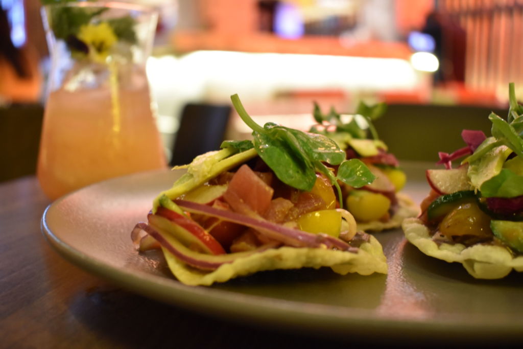 Posteriormente, tienes que probar los «Ton Tuna», tostadas de won ton con atún macerado en salsa ponzu y jengibre, con puré de frijol, pepino persa, aguacate y col morada encurtida.