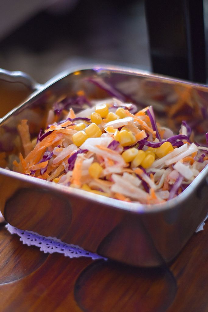 Por otro lado, las frías son: una fresca ensalada, preparada con una combinación de col morada con blanca, zanahoria rallada, jícama y grano de elote; espuma de jamaica, hummus con paprika; sofrito de berenjena con pimiento rojo y cebolla a la turca;créme brulée a base de zapote con toque de caramelo; marinado de betabel con chimichurri y toque de ajonjolí, milanesa de jitomate y salsa marina.