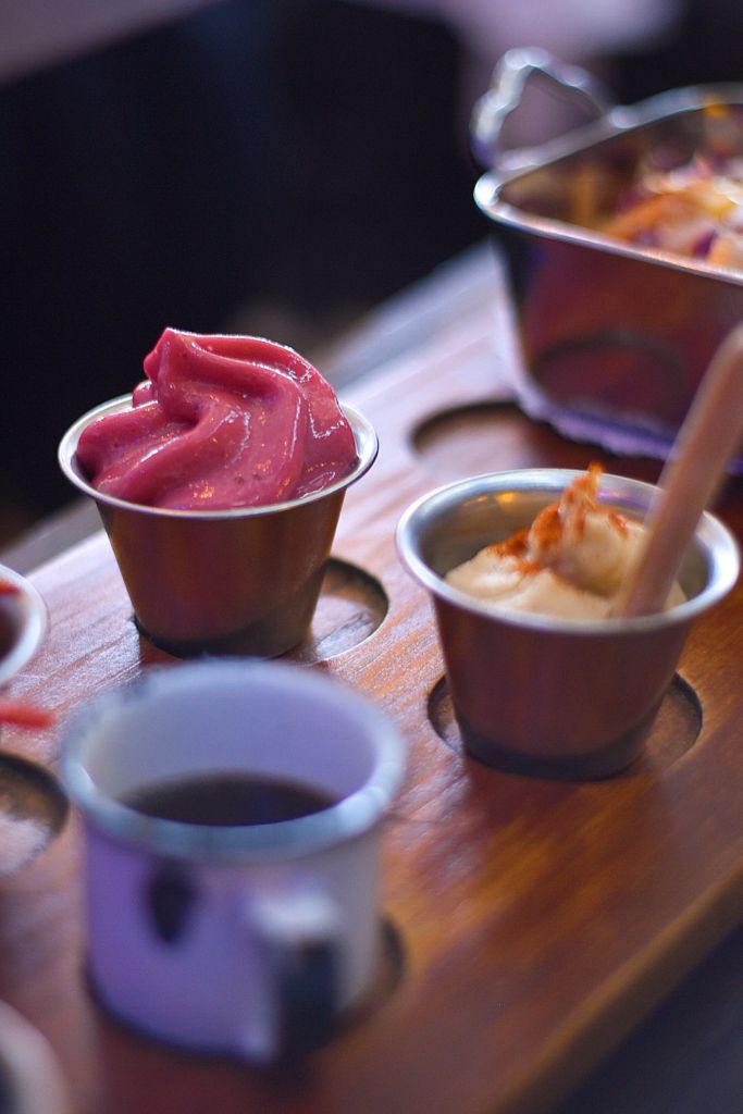 Entre las entradas que no te puedes perder, se encuentran los jugosos pimientos grillados, rellenos de queso con huevo, orégano y una pizca de sal. El secreto de este platillo se encuentra en los aderezos que le acompañan: mayonesa de chimichurri, pesto de jitomate deshidratado y un acidito persivale, con los que puedes jugar y combinar los sabores para conseguir un resultado exquisito.