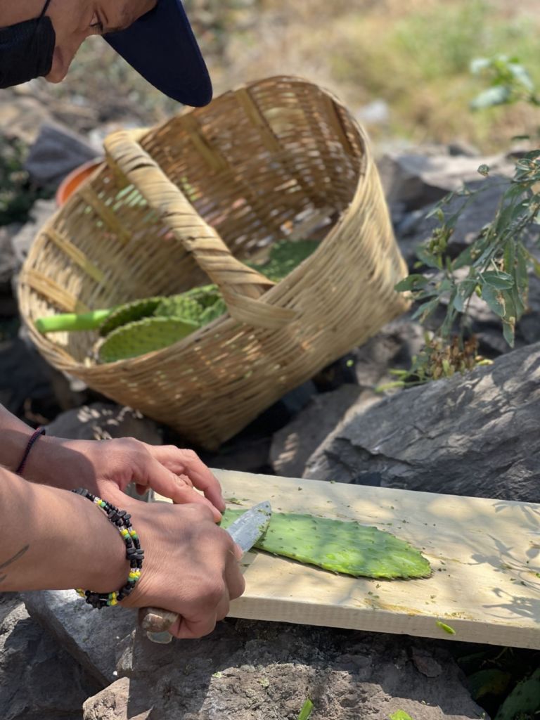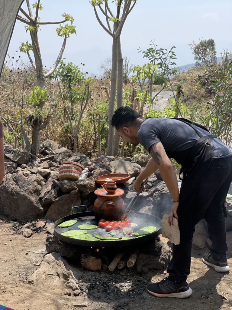 La Ruta de la Milpa comienza con una recepción en San Pedro Atocpan, de aquí se lleva a los asistentes a un desayuno entre nopaleras orgánicas, donde se les explica el cuidado de la planta, el modo de cosecha y la forma de consumirlo. En este recorrido el almuerzo se hace en las nopaleras de Milpa Alta; una pequeña fogata comienza a calentar el enorme comal donde se asan los nopales, los chiles, la cebolla y los jitomates para la salsa tatemada que acompañará todo. El taco placero con tortilla hecha a mano es una de las experiencias más placenteras de este recorrido.