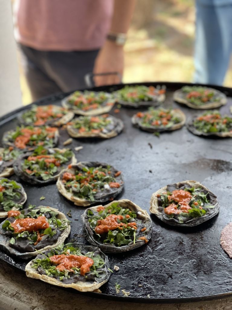Después un taller de tortillas y nixtamal, te enseña el origen de las tortillas de colores con maíces criollos. Laurencia Melo es la cocinera encargada de darte los mejores tips para que tus tortillas queden delgadas, suaves y deliciosas, además te explica la importancia del maíz en la zona y en la dieta diaria de los mexicanos. En la Ruta de la Milpa, puedes elegir entre el taller de tamales de temporada y el taller de mole tradicional, en este último se visita una fábrica de producción de mole con más de 45 años de experiencia.