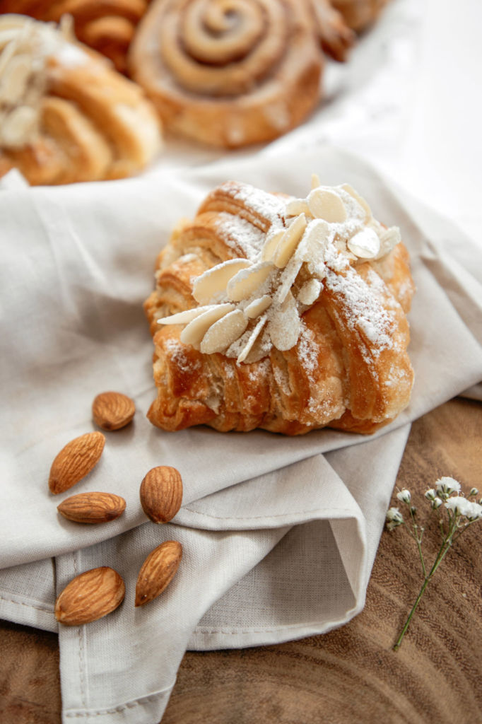 Farine Croissantería cuenta con gran variedad de panes a base de masa hojaldrada como chocolatines, roles de canela, Kouign Amann, babka y mini croissants de cereal, estos últimos son realmente bellos y estamos seguro que los amarás. También elaboran repostería clásica como mostachones con fruta de temporada, pastel de chocolate, pastel de coco y zanahoria.